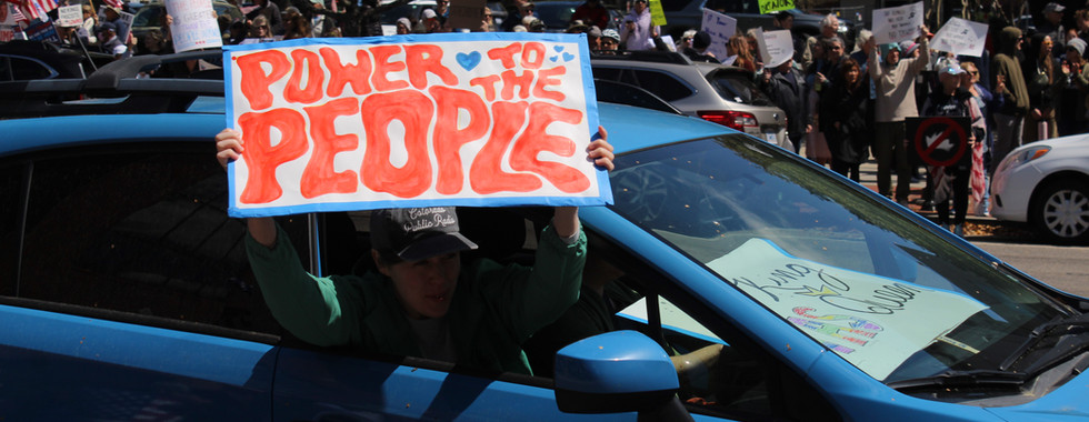 Cars driving down 3rd Street blow and toot their horns in support of the protestors, some supporters holding signs and blasting Rage Against the Machine, sharing their support. Thousands of protestors lined the streets and filled the sidewalks in unity–chanting, shouting, blowing whistles and practicing their freedom of speech.